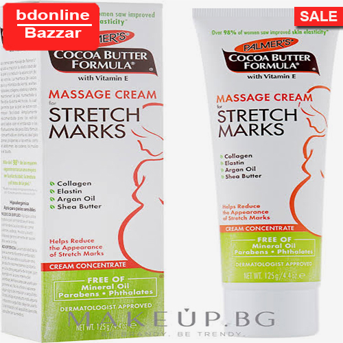 স্ট্রেচ মার্কসের জন্য পামারের কোকো বাটার ফর্মুলা ম্যাসেজ ক্রিম গর্ভাবস্থার প্রসারিত চিহ্নগুলির জন্য বিশেষত ডিজাইন করা একটি ঘন ম্যাসেজ ক্রিম। নতুন বায়ো সি-এলাস্টে, খাঁটি কোকো সমৃদ্ধ শিয়া বাটারস এবং ভিটামিন ই, পামার কোকো বাটার ফর্মুলা ম্যাসাজ ক্রিম স্ট্রেচ মার্কসের জন্য ত্বকের স্থিতিস্থাপকতা এবং আর্দ্রতা উন্নত করতে সহায়তা করে প্রমাণিত হয়েছে। নিয়মিত ব্যবহারের ফলে এটি প্রসারিত চিহ্নগুলি বিকাশের সম্ভাবনা হ্রাস করতে সহায়তা করে। এই নিবিড় এবং অ-চিটচিটে ক্রিম গর্ভাবস্থায় প্রসারিত ত্বকের সাথে সম্পর্কিত শুষ্কতা এবং চুলকানি উপশম করতে পারে। দিকনির্দেশগুলি প্রভাবিত অঞ্চলগুলিতে স্ট্রেচ মার্কের জন্য পামারের কোকো বাটার ফর্মুলা ম্যাসাজ ক্রিম প্রয়োগ করুন। সেরা ফলাফলের জন্য এটি সারা শরীর জুড়ে প্রতিদিন প্রয়োগ করে স্ট্রেচ মার্কসের জন্য ম্যাসেজ লোশন এর সাথে একযোগে ব্যবহার করুন।